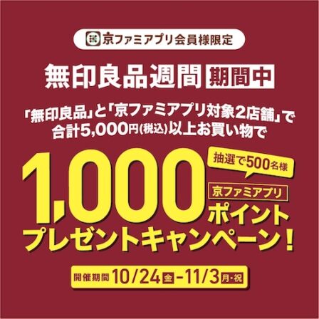 無印良品週間&京ファミアプリ対象2店舗お買い物キャンペーン開催!