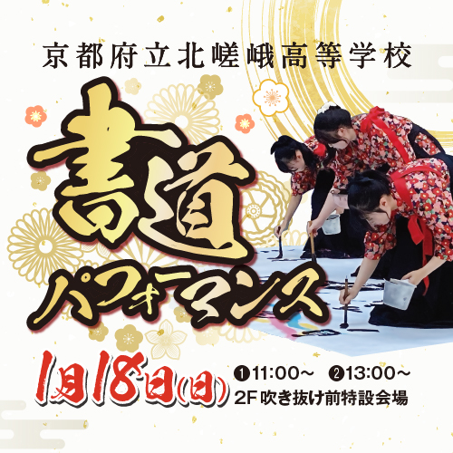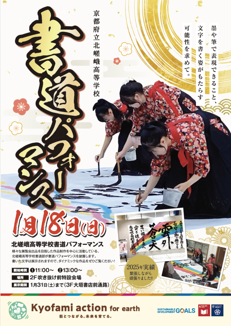 『京都府立北嵯峨高等学校 書道部』が、2026年も書道パフォーマンスを京都ファミリーで開催いたします。