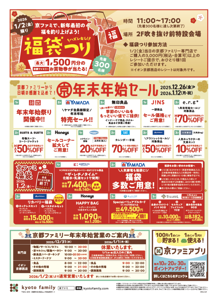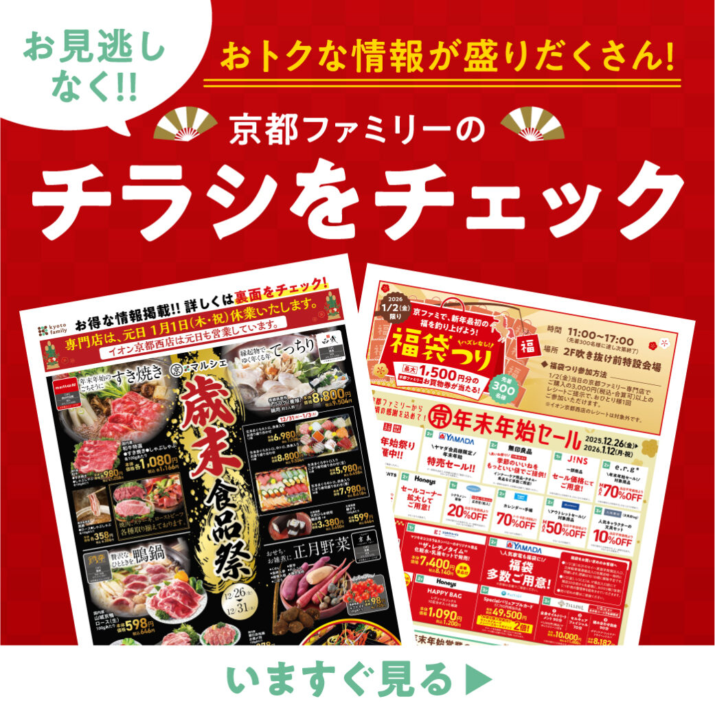 1/2(金)当日の京都ファミリー専門店でご購入の3,000円(税込・合算可)以上のレシートご提示で、おひとり様1回ご参加いただけます。