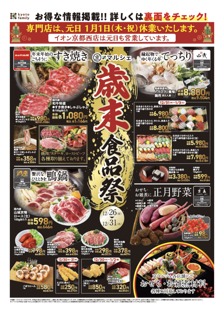 年末のご馳走・お正月準備は京都ファミリーへお任せください。