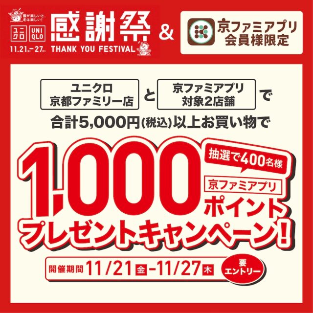【予告】ユニクロ感謝祭&京ファミアプリ対象2店舗お買い物キャンペーン開催!