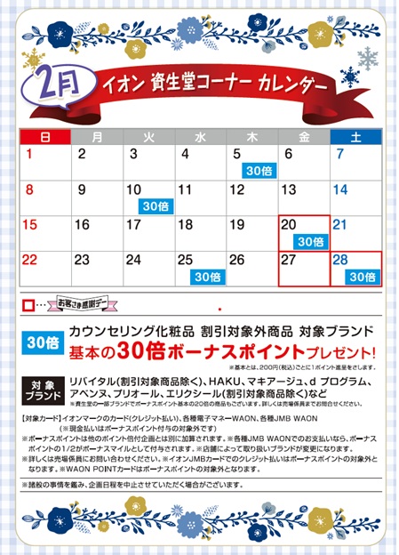 ※詳細、イオン資生堂コーナーカレンダーをご参照ください。