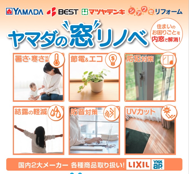 ヤマダデンキではご自宅の「窓」リノベを承っております。家中の「窓」リノベで快適&エコな理想の家に!