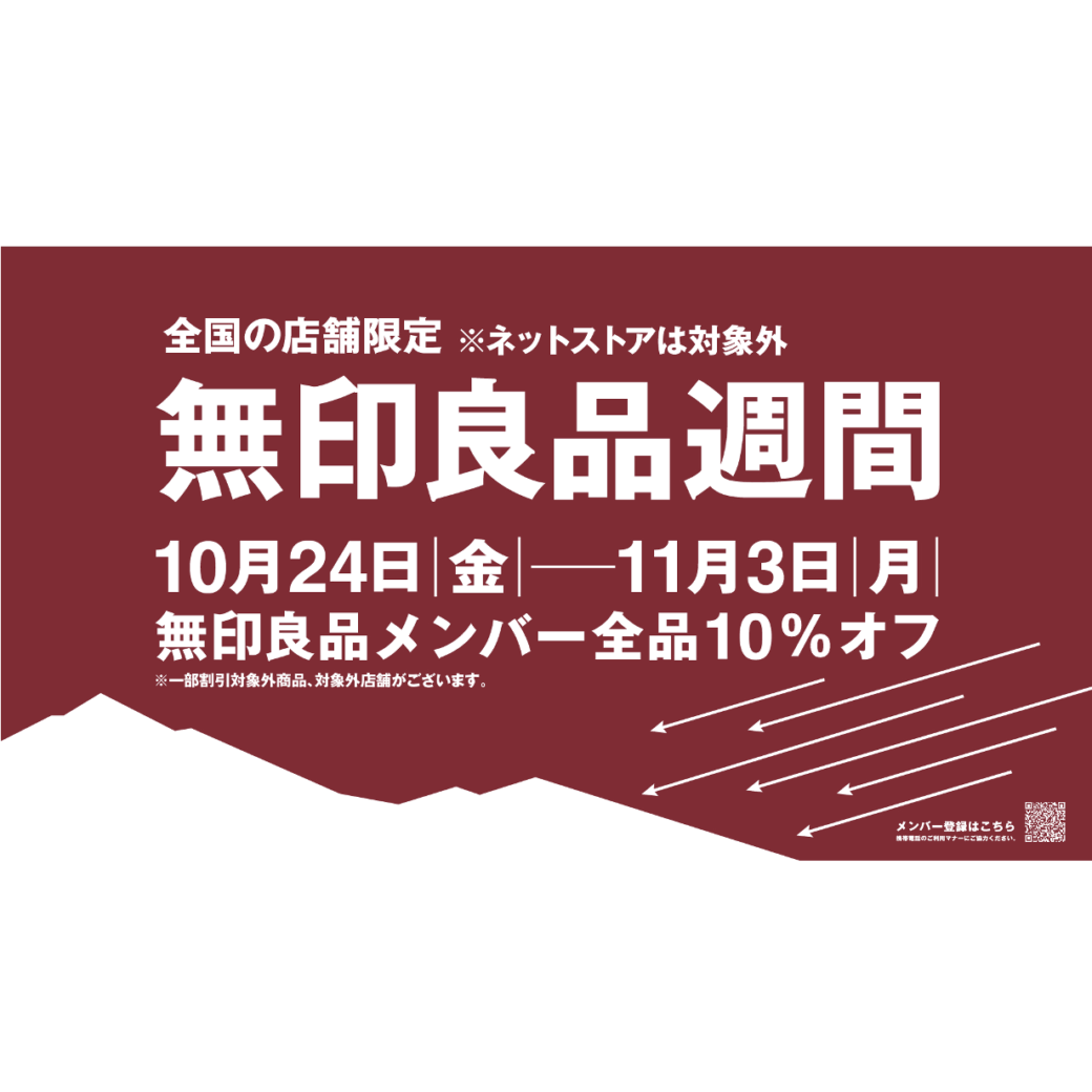 無印良品メンバーの皆様は、ご優待価格でお買い物いただける大変お得な期間です。(一部割引対象外商品がございます。)