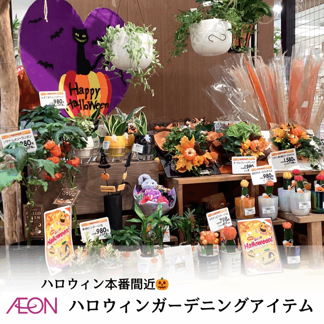 イオン生花売場では、ハロウィンのガーデニングアイテムを