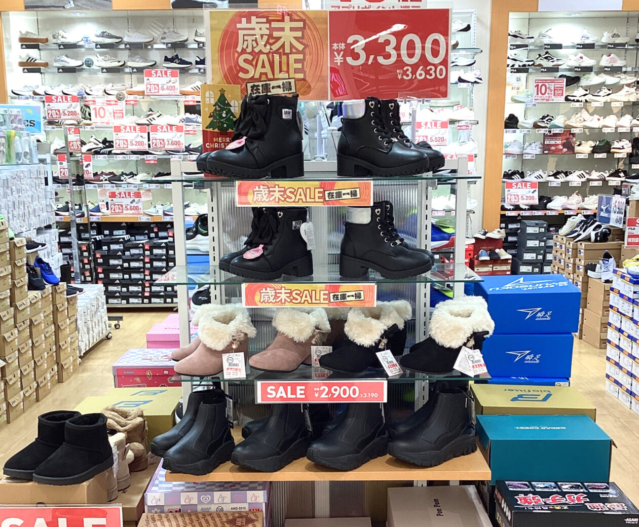 レディースブーツやパンプス、キッズスニーカーもセール対象アイテムです。