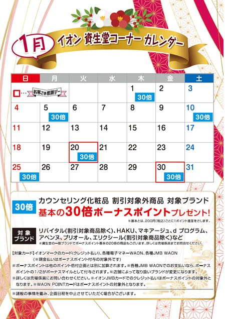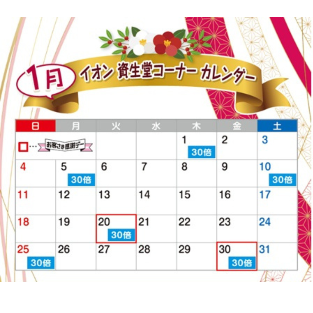 ※詳細、イオン資生堂コーナーカレンダーをご参照ください。