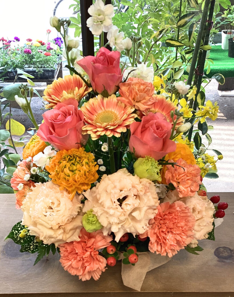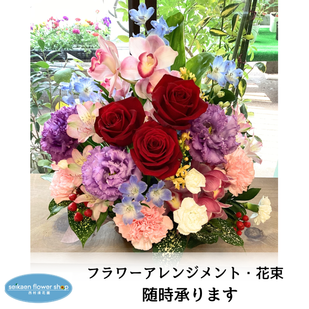 当店では、お誕生日等のお祝い事、お供え用のフラワーアレンジメントや花束の