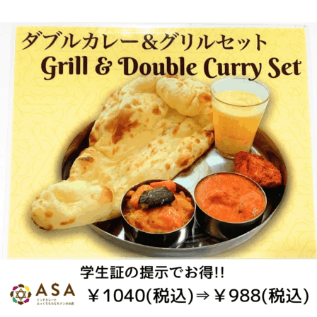 学生証のご提示でダブルカレーRグリルセットがお得!!